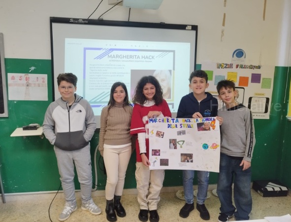 Suddivisi in gruppi di lavoro, gli studenti hanno condotto ricerche su tre importanti figure femminili che hanno segnato la storia della scienza: Amalia Ercoli Finzi, pioniera dell’ingegneria aerospaziale; Ipazia d’Alessandria, filosofa, matematica e astronoma dell’antichità; e Margherita Hack, celebre astrofisica e grande divulgatrice scientifica.