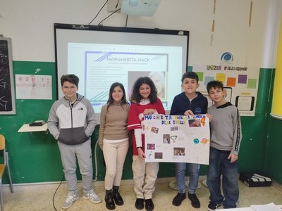 Suddivisi in gruppi di lavoro, gli studenti hanno condotto ricerche su tre importanti figure femminili che hanno segnato la storia della scienza: Amalia Ercoli Finzi, pioniera dell’ingegneria aerospaziale; Ipazia d’Alessandria, filosofa, matematica e astronoma dell’antichità; e Margherita Hack, celebre astrofisica e grande divulgatrice scientifica.